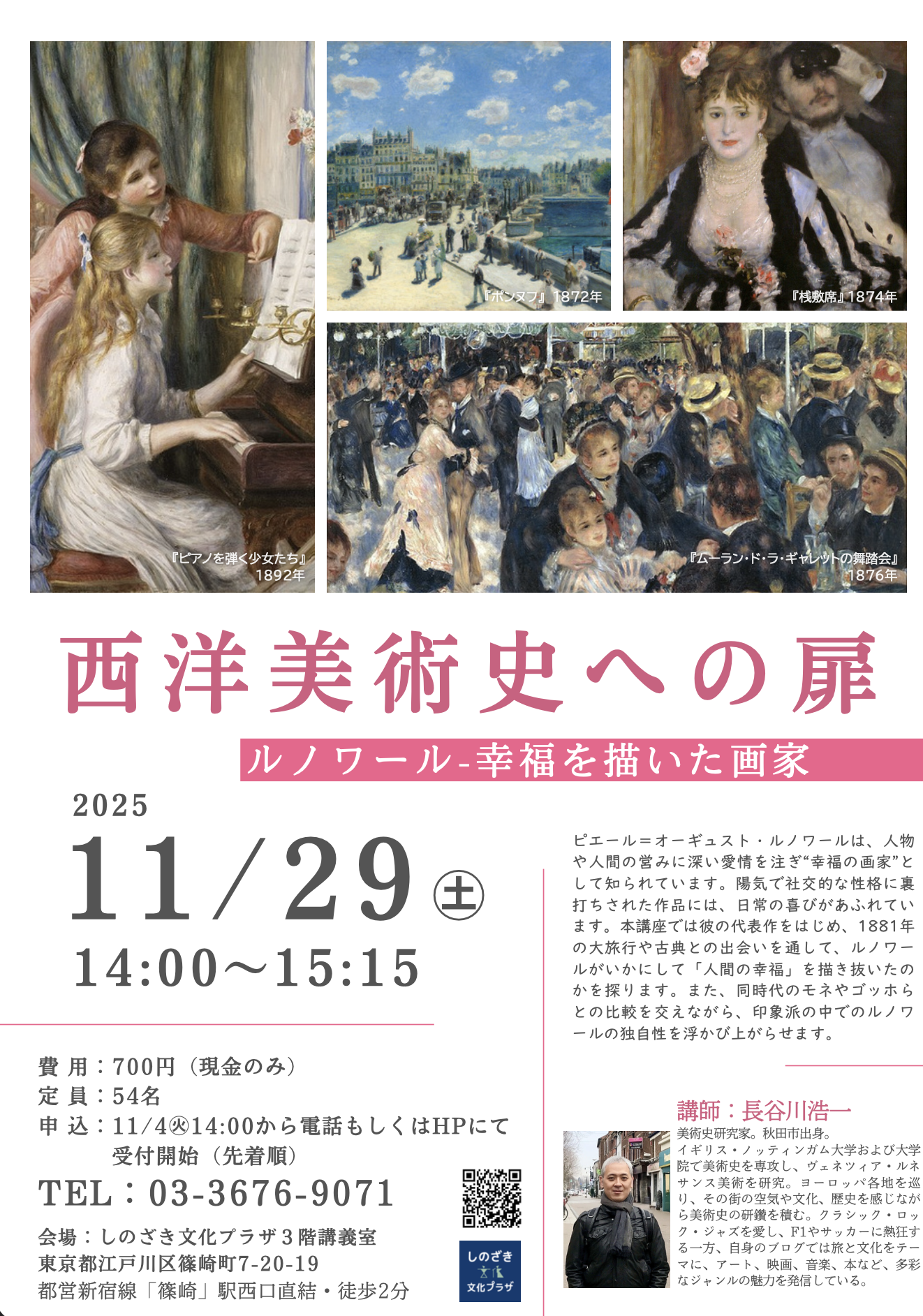 11月29日(土)に、しのざき文化プラザ主催による 「西洋美術史への扉」を開催いたします。